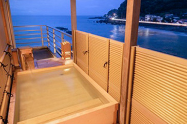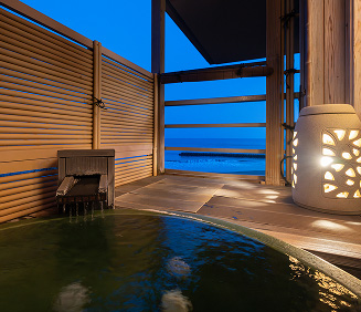海を一望できる専用の露天風呂を備えた、ゆったりとした広さのお部屋です。