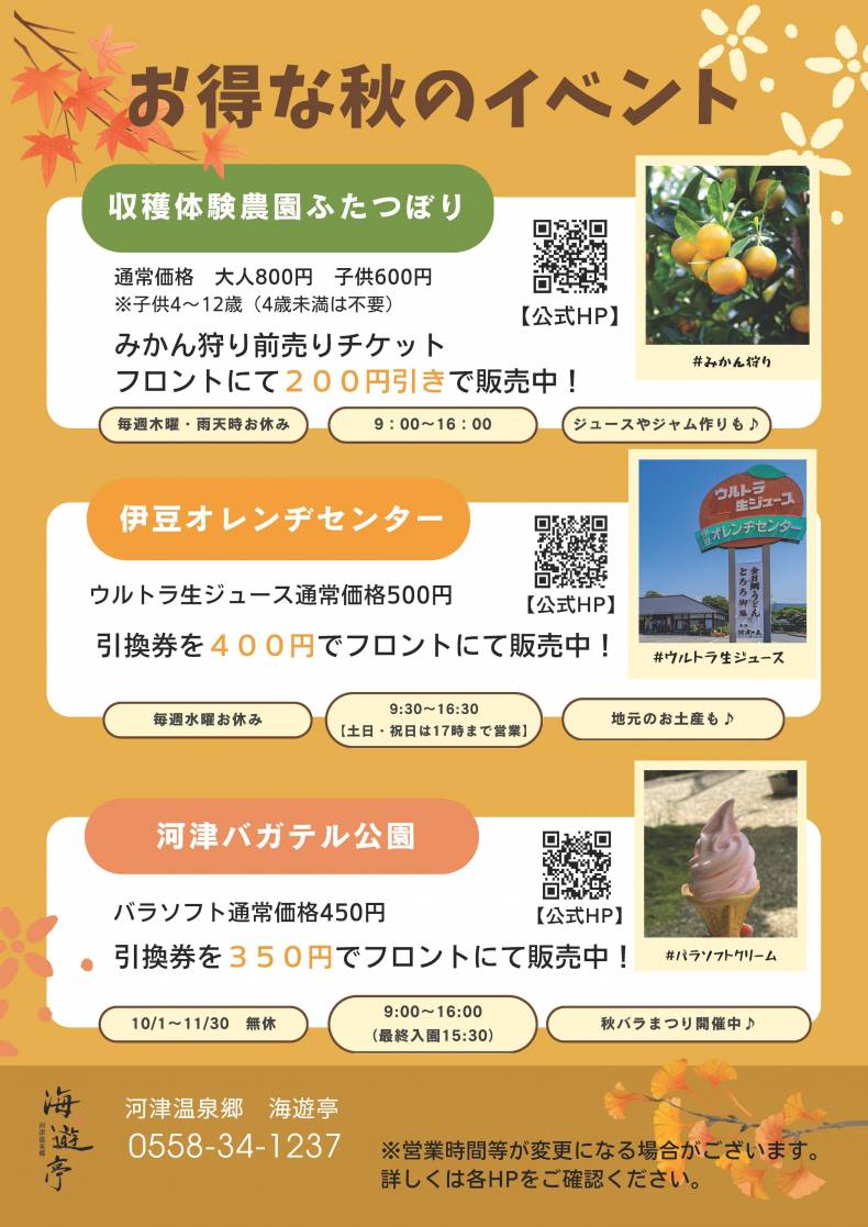 秋の河津を満喫!~季節限定の特別チケットのご案内~
