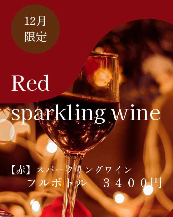 ・内容:赤のスパークリングワインを お一人様1杯無料