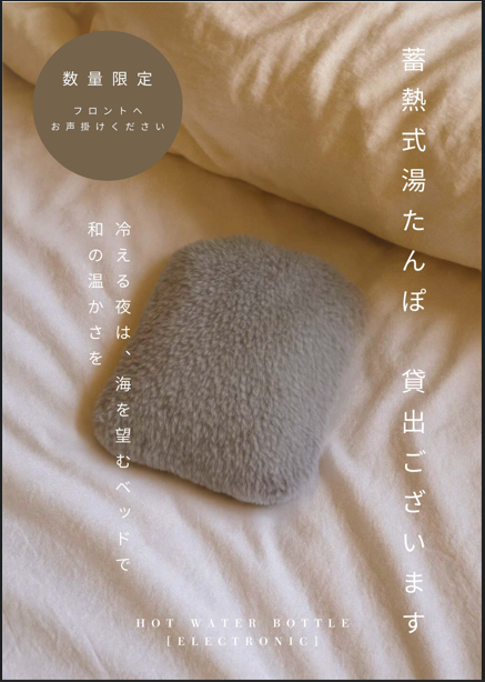 数量限定で「蓄熱式湯たんぽ」の貸し出しをご用意いたしました。